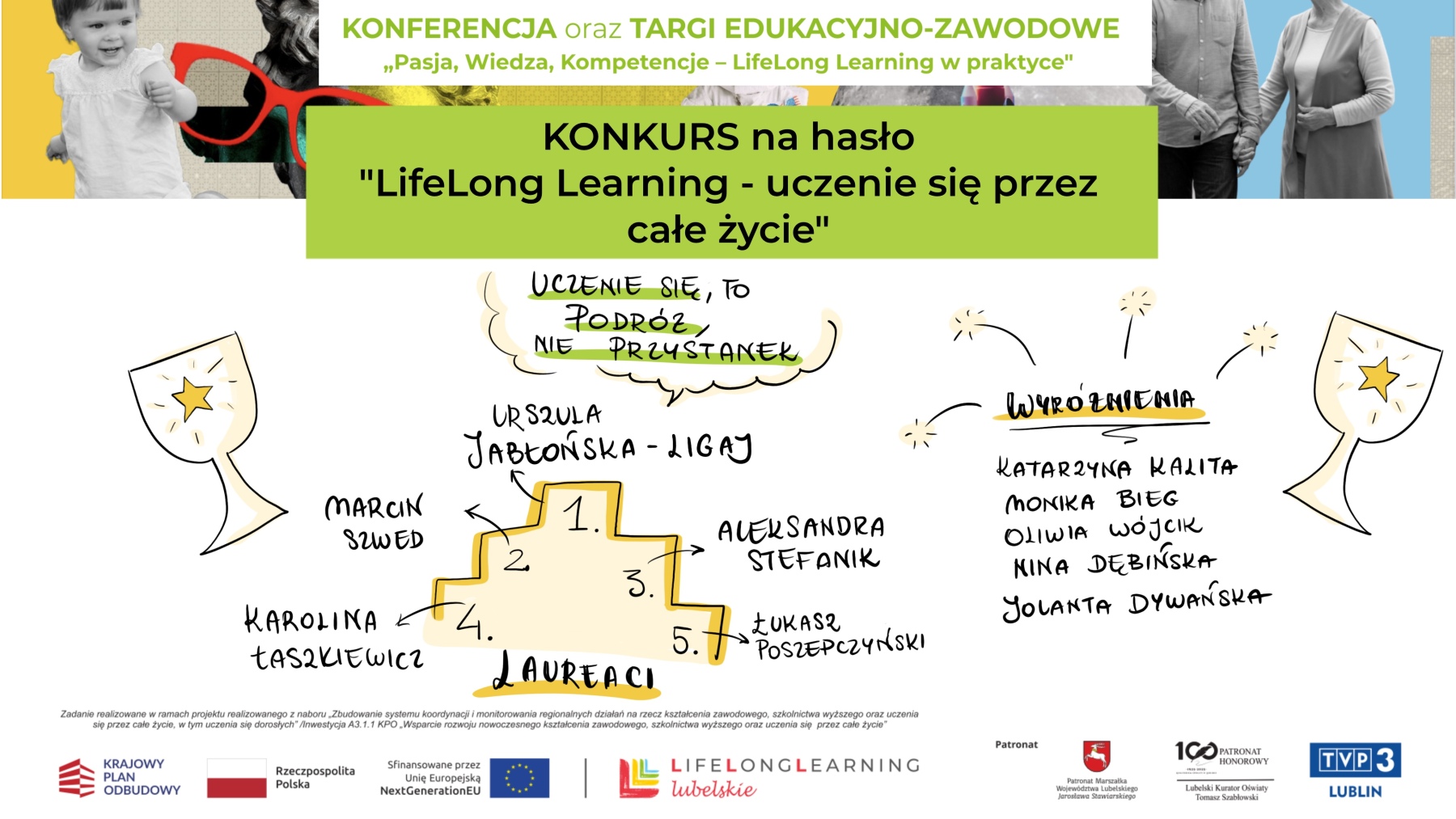 - Konkurs na hasło o lifelong learning – którego zwycięskie motto „Uczenie się to podróż, nie przystanek” doskonale podsumowało cały dzień.
