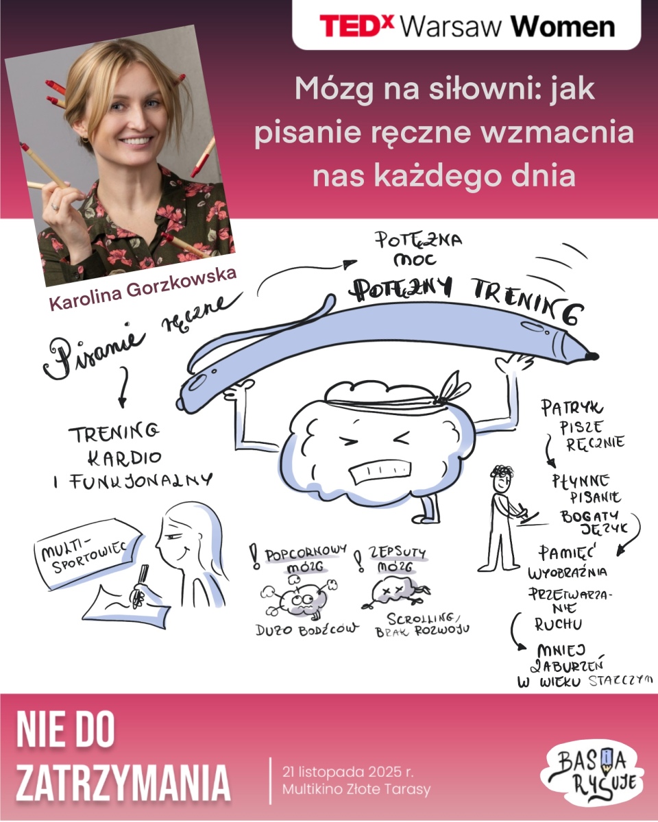 Zanim konferencja się rozpoczęła, powstał film, w którym opowiadam, jak wygląda proces tworzenia notatek na żywo i dlaczego prostota może być kluczem do większej dostępności. To krótkie wideo pokazuje, że uproszczone notatki wizualne nie tylko porządkują treść, ale też budują most między mówcą a słuchaczem.
